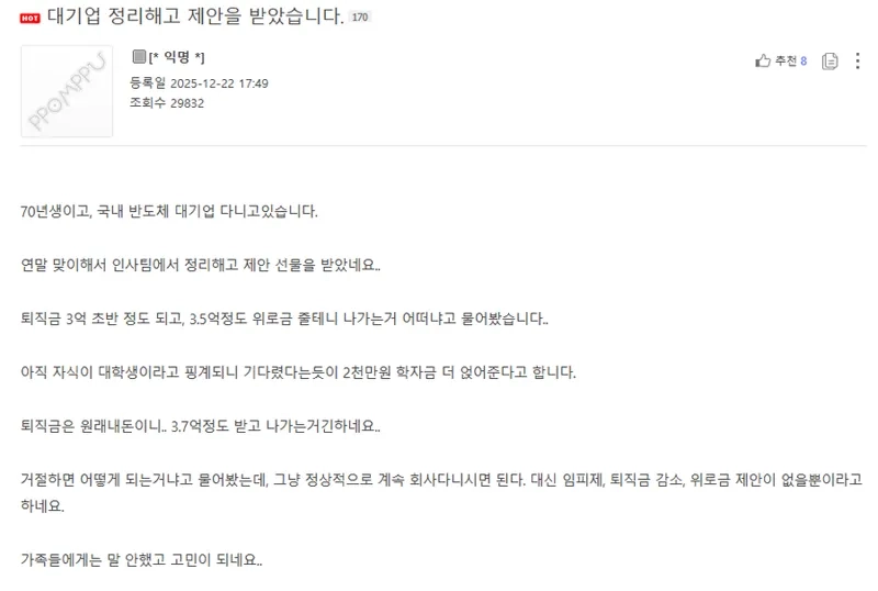 대기업 정리해고 제안을 받았습니다.