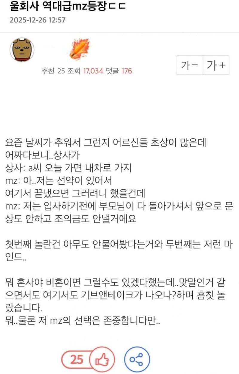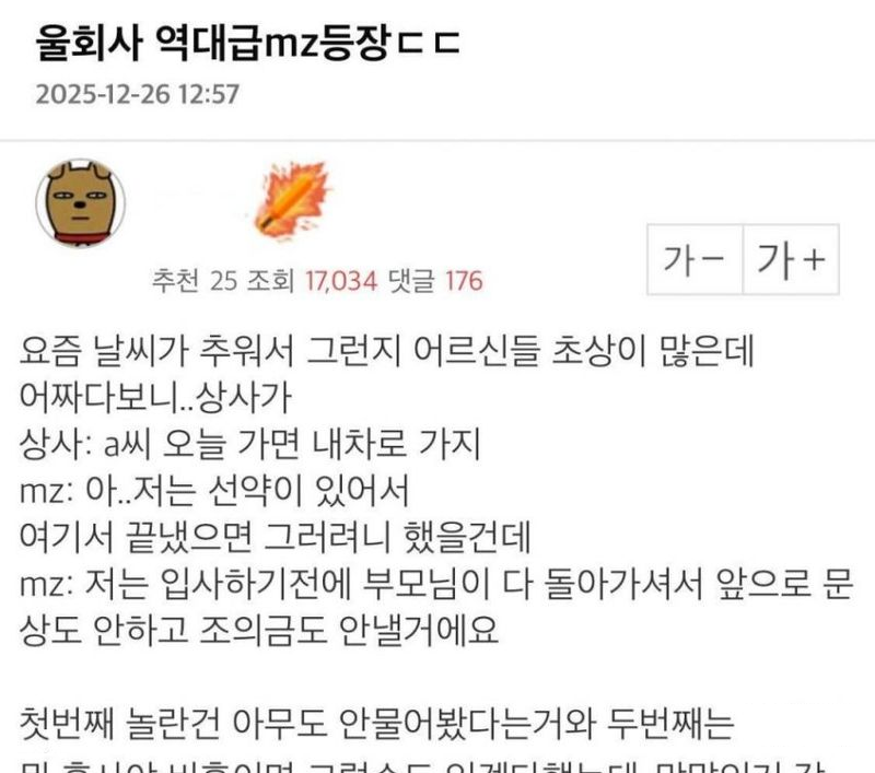 유머역대급 MZ 등장했다는 회사 ㄷㄷ위키뉴스 기자입력북마크공유가글자크기프린트댓글역대급 MZ 등장했다는 회사 ㄷㄷ위키뉴스 기자[email protected]카카오톡페이스북트위터밴드URL복사