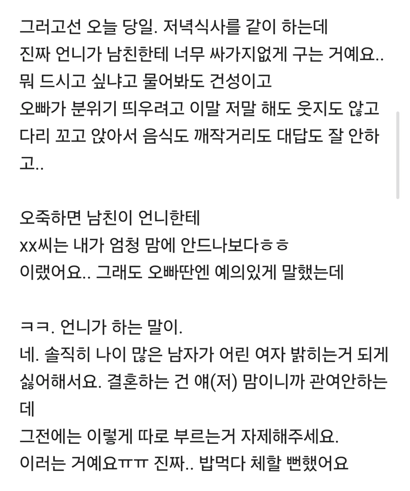 유머언니가 남친을 도ㄷ놈 취급해요 (+반년 후 후기)위키뉴스 기자입력북마크공유가글자크기프린트댓글언니가 남친을 도둑놈 취급해요 (+반년 후 후기) 위키뉴스 기자[email protected]카카오톡페이스북트위터밴드URL복사