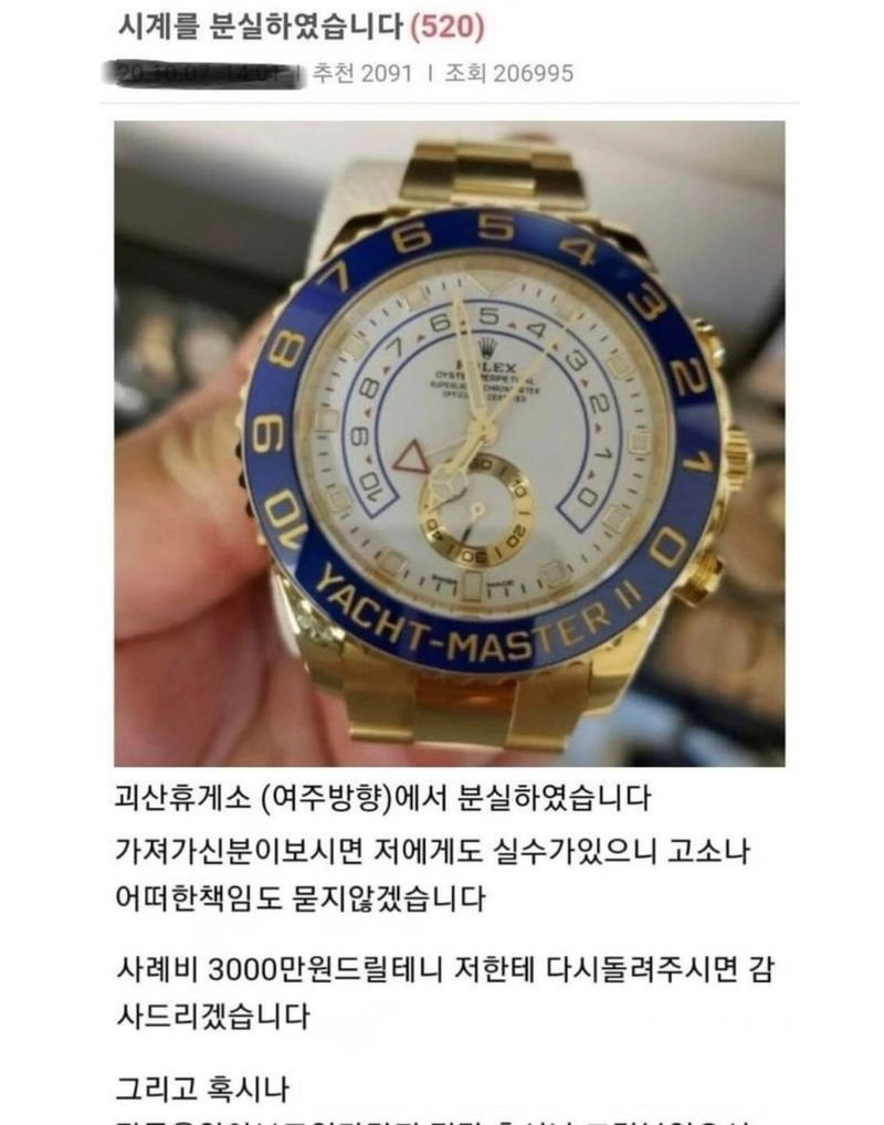 리와인드뉴스사례금만 3천만원인 시계 레전드 사건ㄷㄷ (+후기)위키뉴스 기자입력북마크공유가글자크기프린트댓글 사례금만 3천만원인 시계 레전드 사건ㄷㄷ (+후기) 위키뉴스 기자[email protected]카카오톡페이스북트위터밴드URL복사