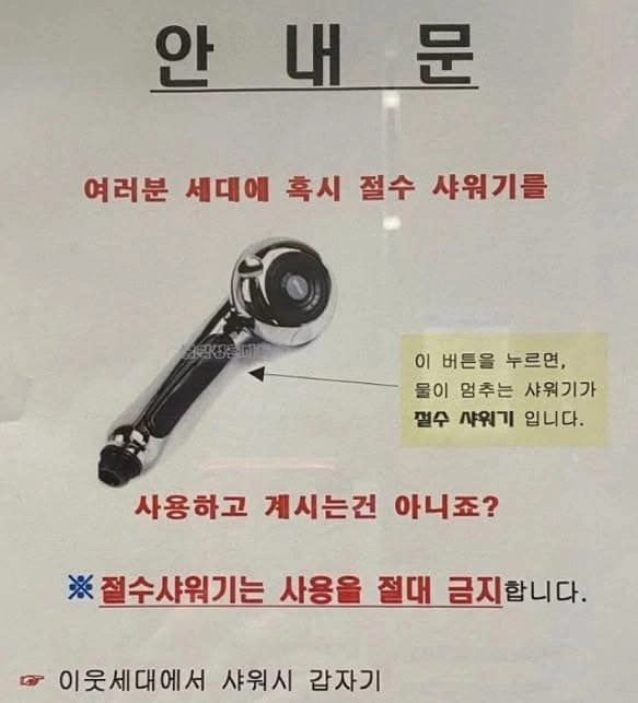 리와인드뉴스절수 샤워기 절대 쓰지 마세요!위키뉴스 기자입력북마크공유가글자크기프린트댓글 절수 샤워기 절대 쓰지 마세요! 위키뉴스 기자[email protected]카카오톡페이스북트위터밴드URL복사